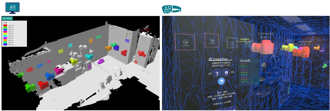 AR匠RESI DENCE X1.0で作成したモデルの点検記録はHoloLens版にも共有できます。