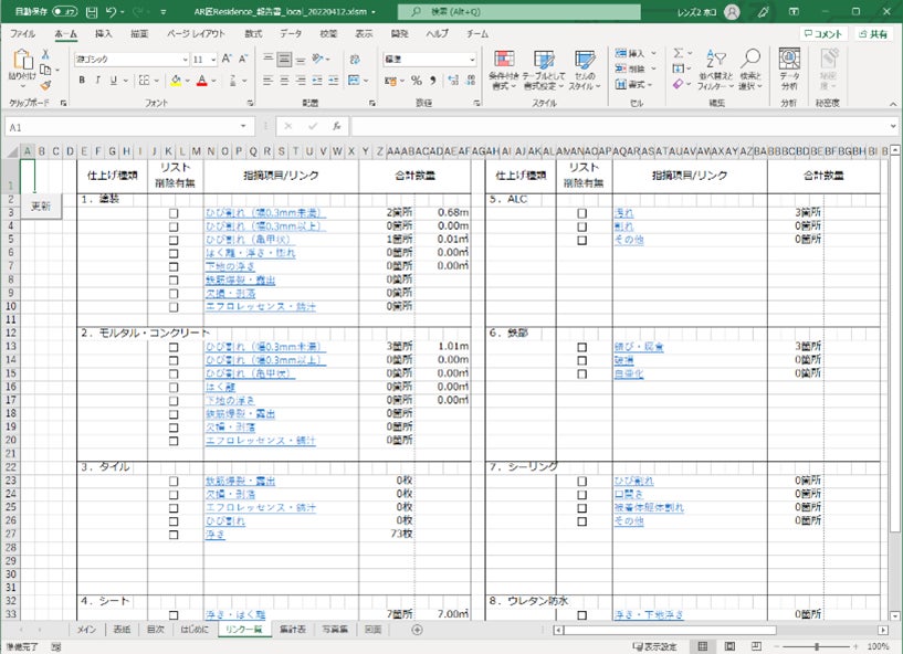 検査結果を入力できる項目(ALC・鉄部・シーリング、ウレタン防止、アスファルト防水、シート防水)を追加し、検査対象を増やしました。