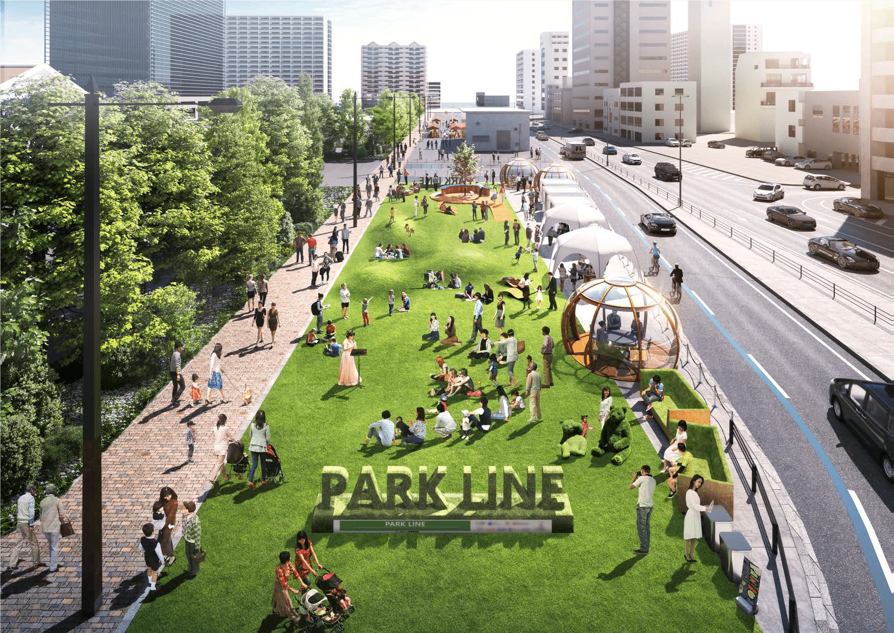 ※1「PARK LINE」モデル とは、民間マネジメントにより、①基盤整備(グリーンインフラ×インフラ分野のDX)、②交通(周遊)、③地域資源活用(文化創造、賑わい創造)、④地域経営、をまちづくり視点で一体的に取組むことで、公共空間(道路、公園、水辺等)の質的転換を図り、持続的な地域価値向上の実現を目指す取組み。地域連携・地域共創型の全国展開モデル。現在、横浜、千葉、福岡、長崎等で展開中。
