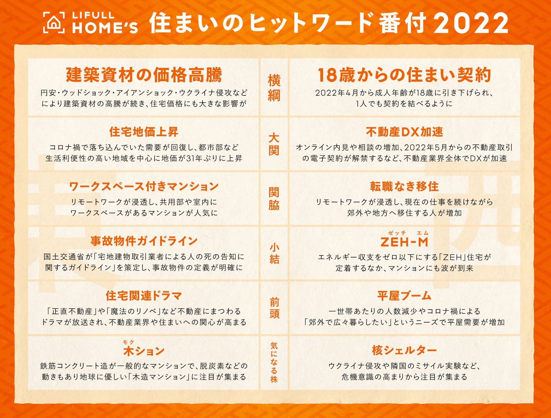 住まいのヒットワード番付2022発表|LIFULL HOME’S