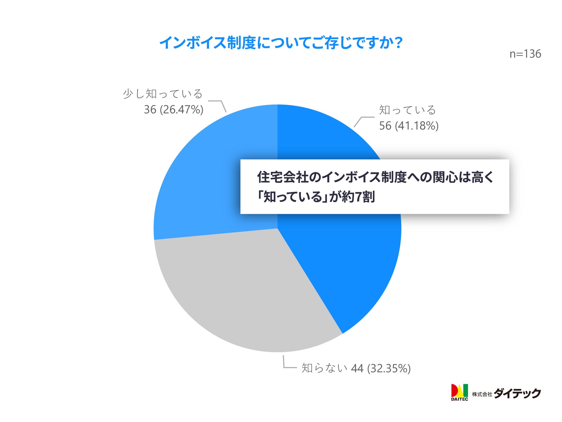 クラウドサービスで住宅会社のDXを推進する株式会社ダイテック(本社:東京都中央区、代表取締役社長:野村 明憲、以下「ダイテック」)は、「住宅会社のインボイス制度対応状況に関するアンケート」調査結果を公開しました。(有効回答137件、調査期間2022年11月11日~2022年11月16日)