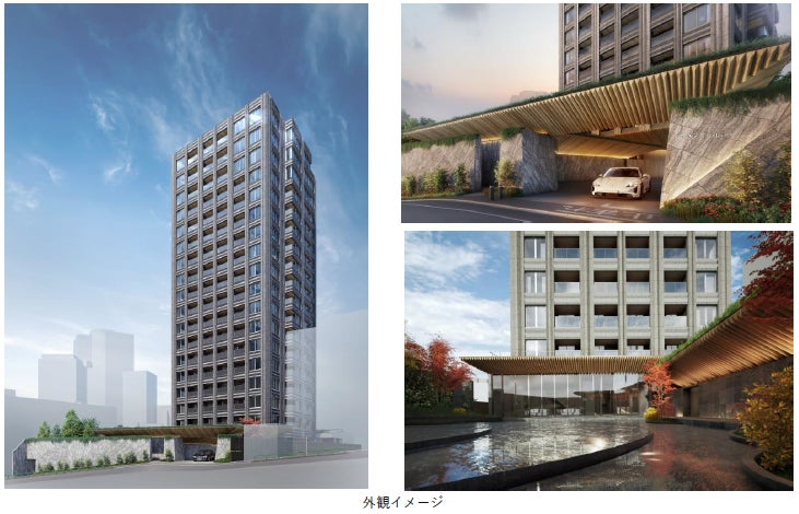 陽の移ろい(太陽の動き)によって、異なる表情を見せる陰影を大切にし、見る時間によって表情に変化が生まれることで高層住宅が持つ圧迫感を軽減し、街に対して軽やかに浮遊するデザインとなっています。また、新しい試みとして、本物の石の質感を上層階まで設えていくことに挑戦し、自然素材の繊細さによる伸びやかな垂直のラインを強調することで、建物に重厚感と高級感を持たせながらも、先進的なデザインを目指しました。