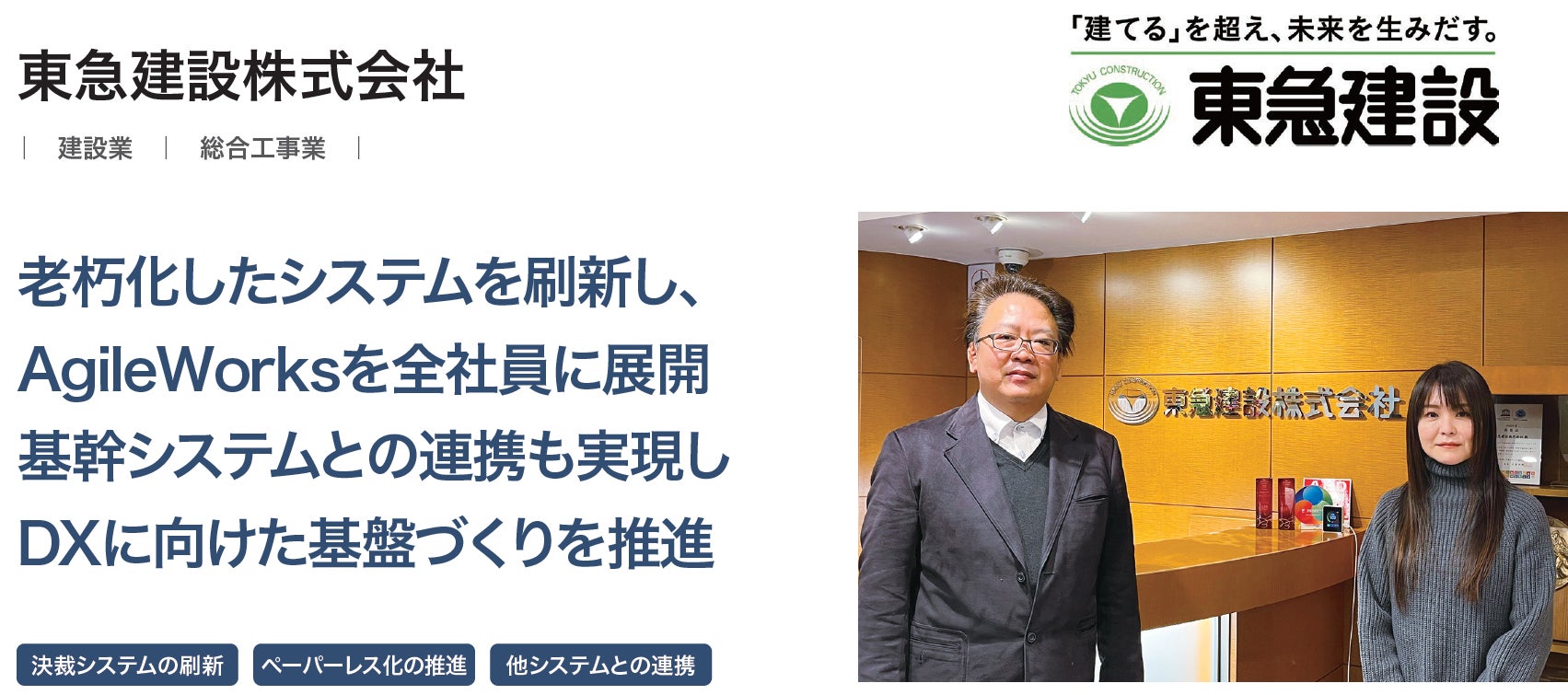 東急建設、ペーパーレス化実現|ワークフローシステム「AgileWorks」導入