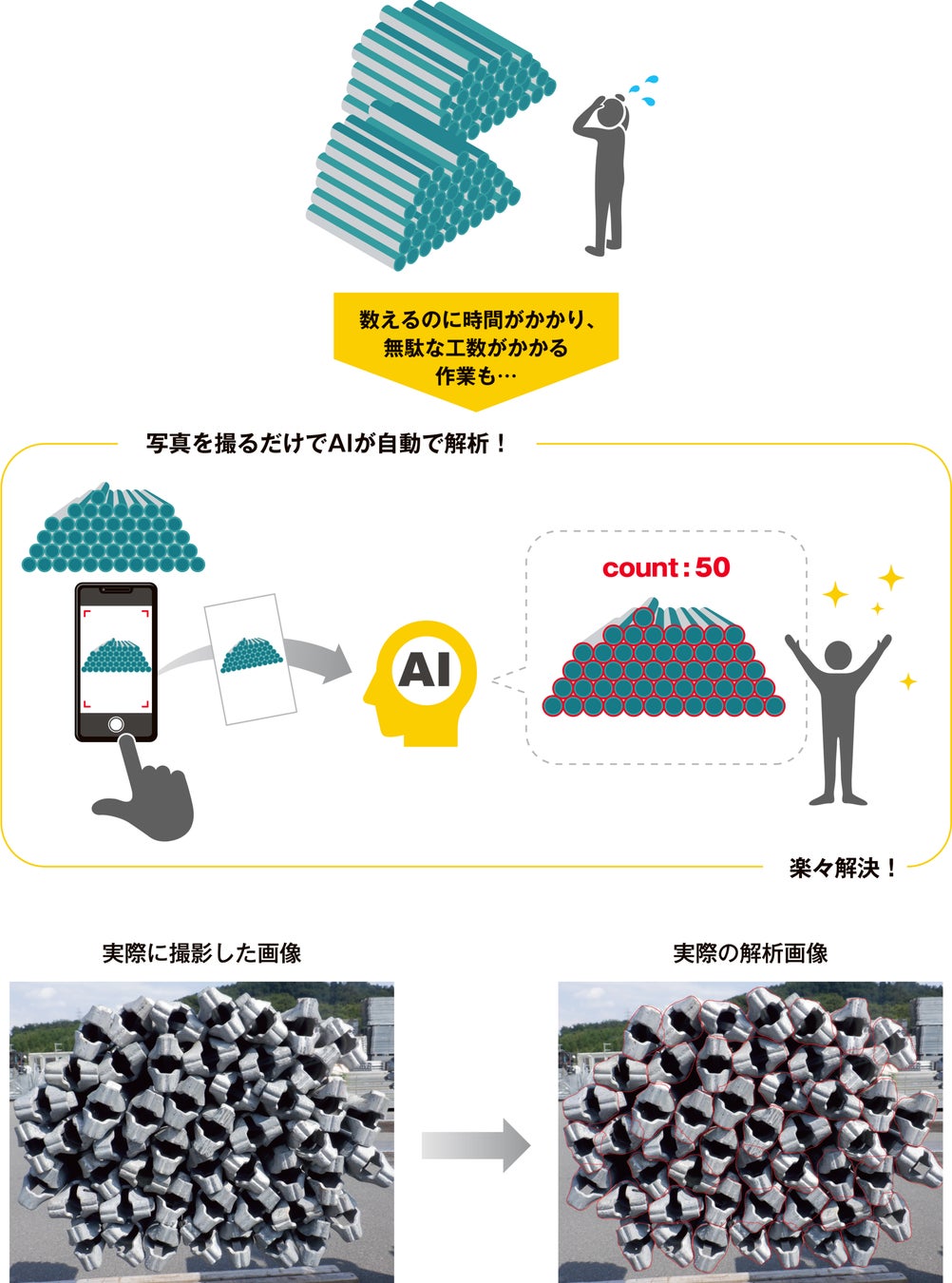 株式会社エルライン(東京都品川区、代表取締役:浅野 勝人)は、ユアサ商事株式会社(東京都千代田区、代表取締役社長:田村 博之)と、connectome.design株式会社(東京都千代田区、代表取締役:佐藤 聡)の3社でAIによる画像認識を用いた仮設資材の数量カウントシステムを開発しました。