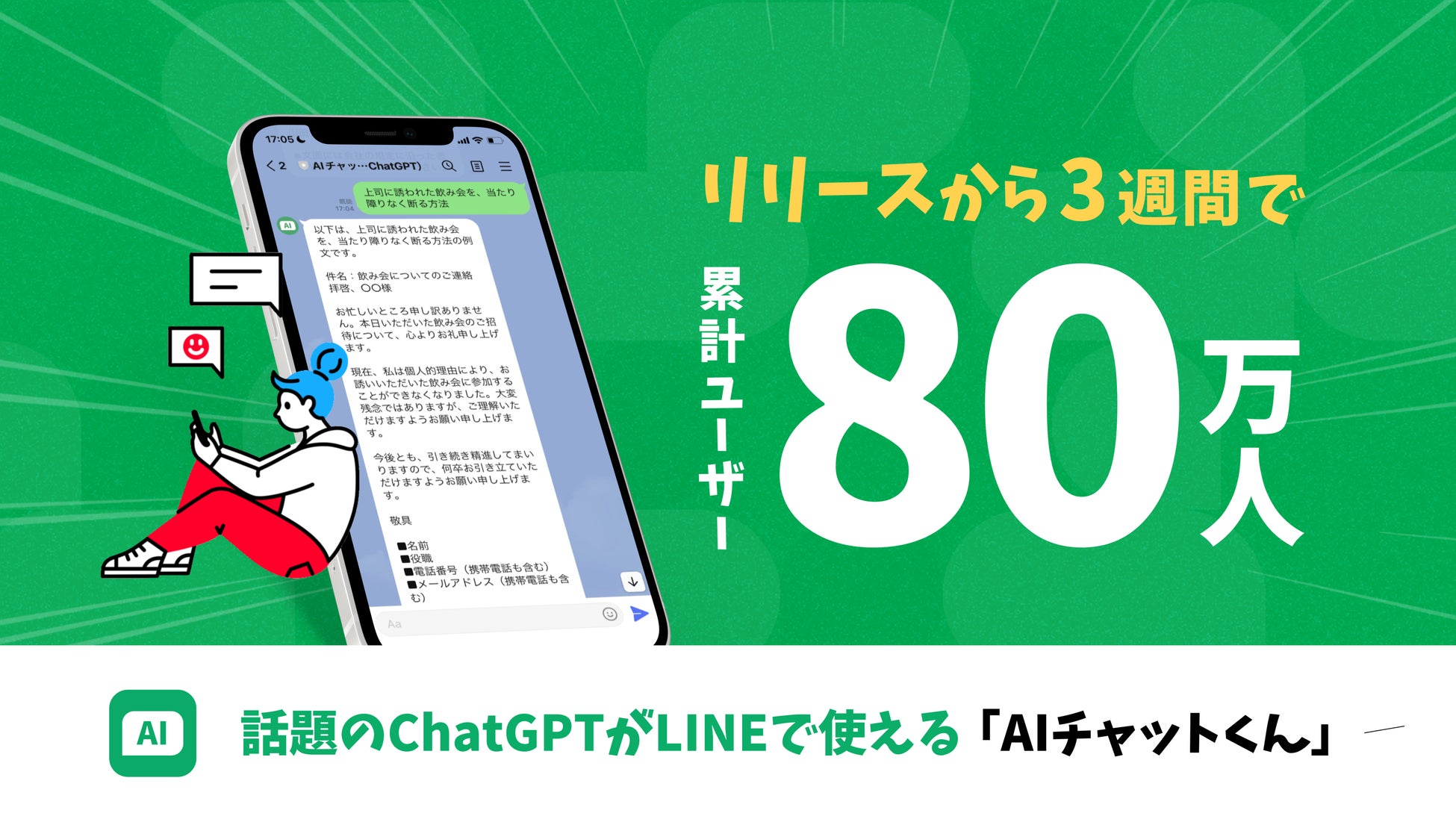 ChatGPTを手軽に使える「AIチャットくん」、スマホ版をリリース|3週間で80万人登録