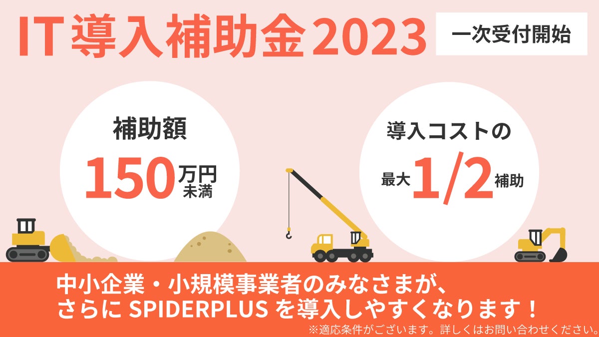 建設DXサービス「SPIDERPLUS」を提供するスパイダープラス株式会社(本社:東京都港区、代表取締役社長:伊藤謙自、以下「スパイダープラス」 、東証グロース:4192)は、「IT導入補助金2023」(以下「IT導入補助金」)制度におけるIT導入支援事業者として採択されたことをお知らせいたします。