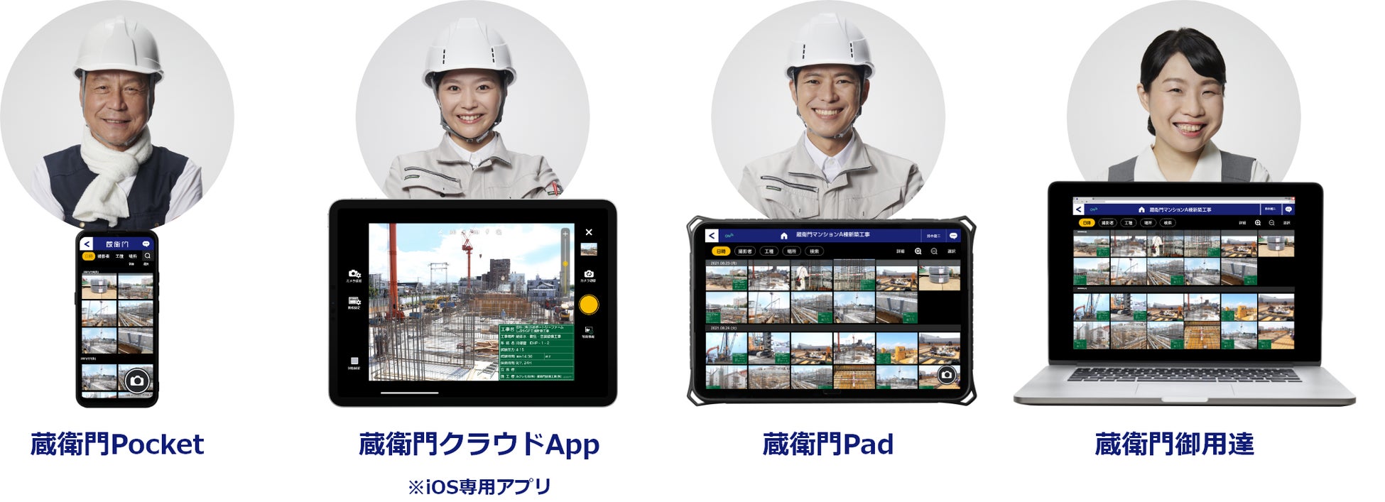 2022年4月より開始した現場共有アプリ『蔵衛門クラウド』は、今まで見えにくかった工事の状況や進捗をリアルタイムに把握する“現場が見える”を提供します。『蔵衛門クラウド』を通じて指示・確認・報告・記録などの業務をスピーディーに行え、業務の分業化などの建設DXを実現させます。