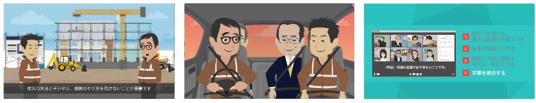鴻池組社内の方々にモデル出演頂いたストーリー調のアニメーション動画や、具体的な鴻池組の業務を題材としたデジタル技術の活用例など、強制ではなく、見たくなる仕組み作りを随所に盛り込んでおります。