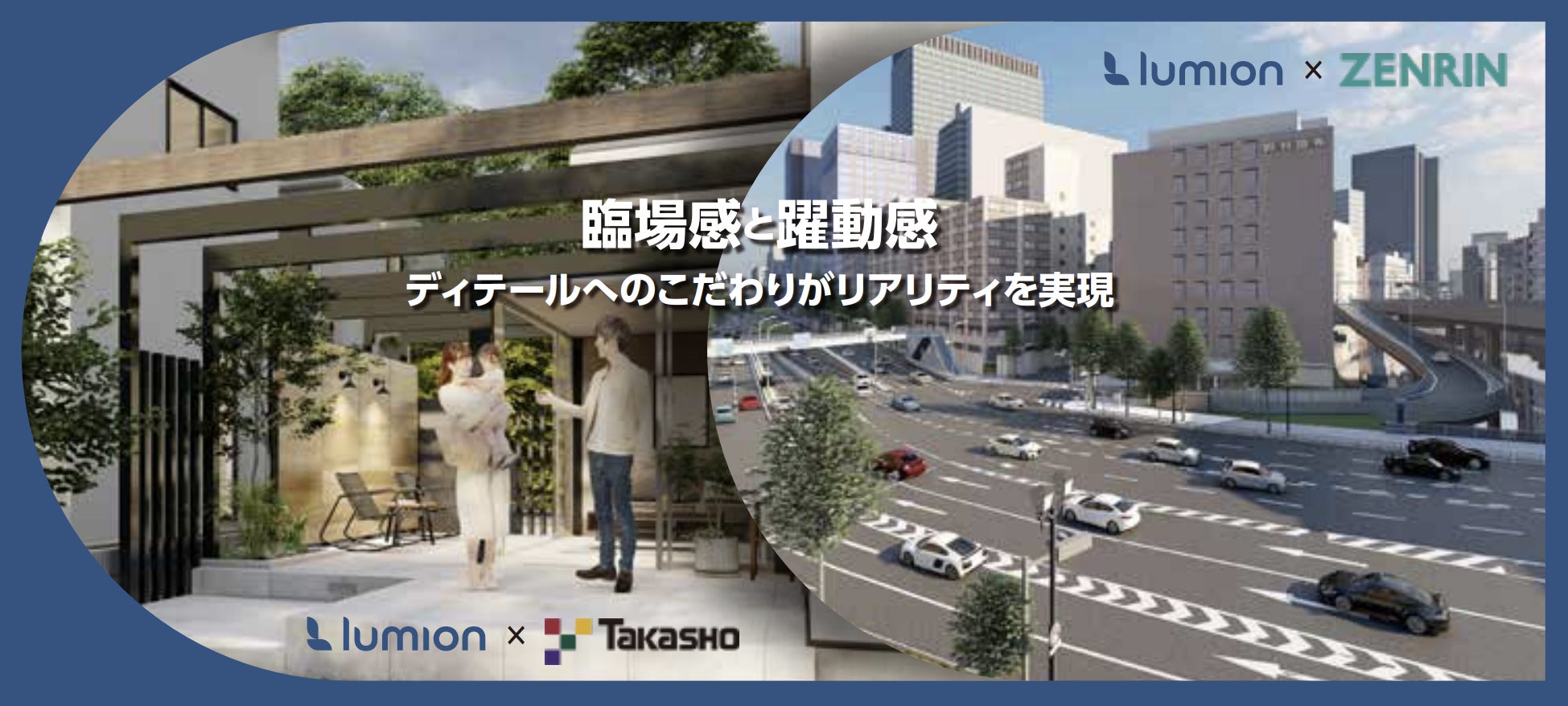 「株式会社タカショー」と日本向け外構オブジェクトの提供においてタッグを組み 、そして「株式会社ゼンリン」の3D都市モデルデータ&広域3次元モデルデータ*をLumion形式での提供いただくことで、今回のサービスローンチに至りました。(3D都市モデルデータ&広域3次元モデルデータ*…2023年5月10日(水)にアドバンスサポートで提供開始)