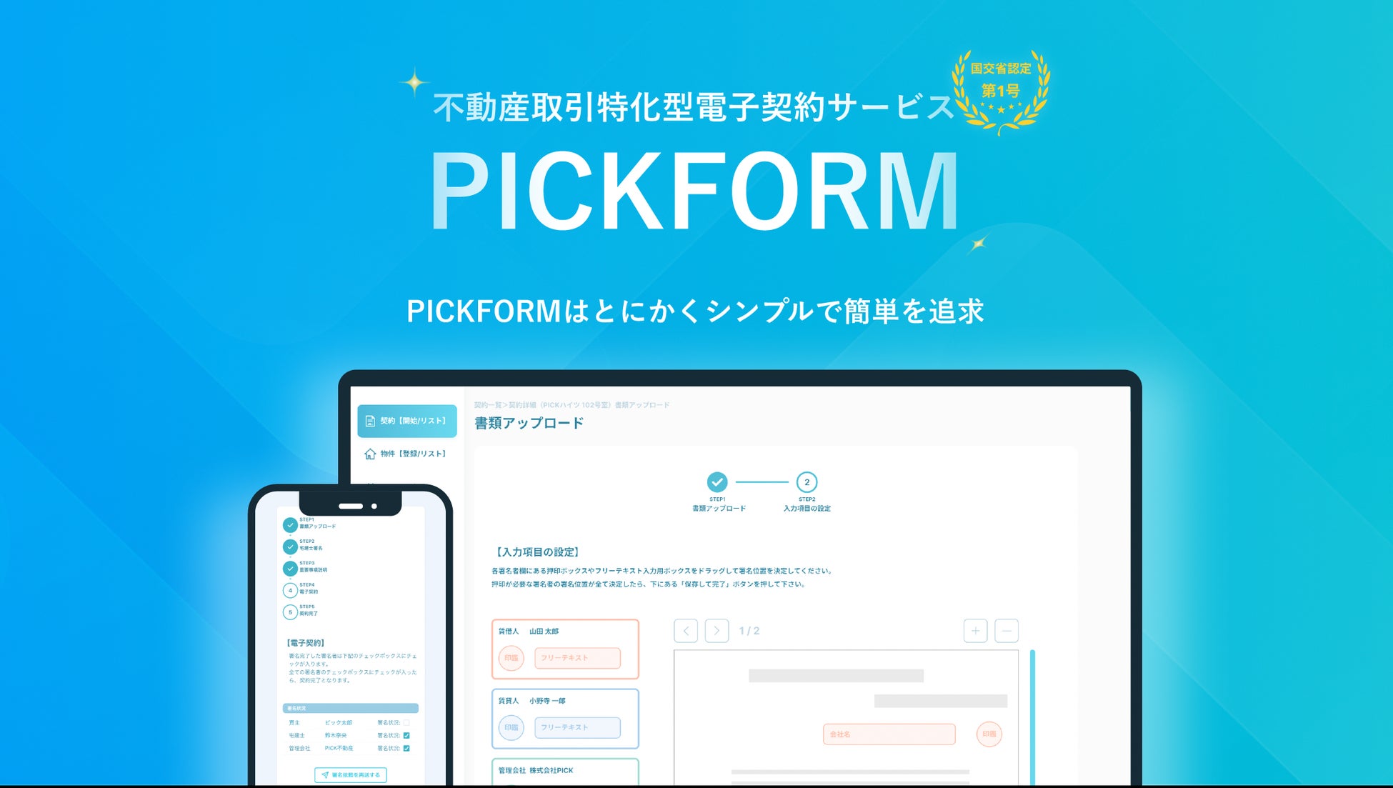 不動産取引特化型電子契約サービス「PICKFORM」を開発する株式会社PICK(本社:東京都目黒区、代表取締役社長兼CEO:普家 辰哉)は、TOKYO PRO Market上場企業である株式会社アイダ設計(本社:埼玉県さいたま市、代表取締役社長:會田 貞光)に、不動産取引に特化した電子契約サービス「PICKFORM」を導入いただいたことをお知らせいたします。