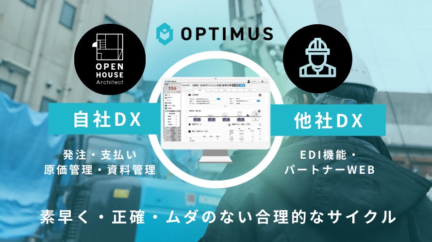 株式会社オープンハウス・アーキテクト(本社 東京都中野区、代表取締役長井 光夫、以下「オープンハウス・アーキテクト」)は、マンション・総合請負事業のさらなる受注拡大に向け、EDI請求機能を搭載した建設DXプラットフォーム「Optimus」の提供を開始しました。
