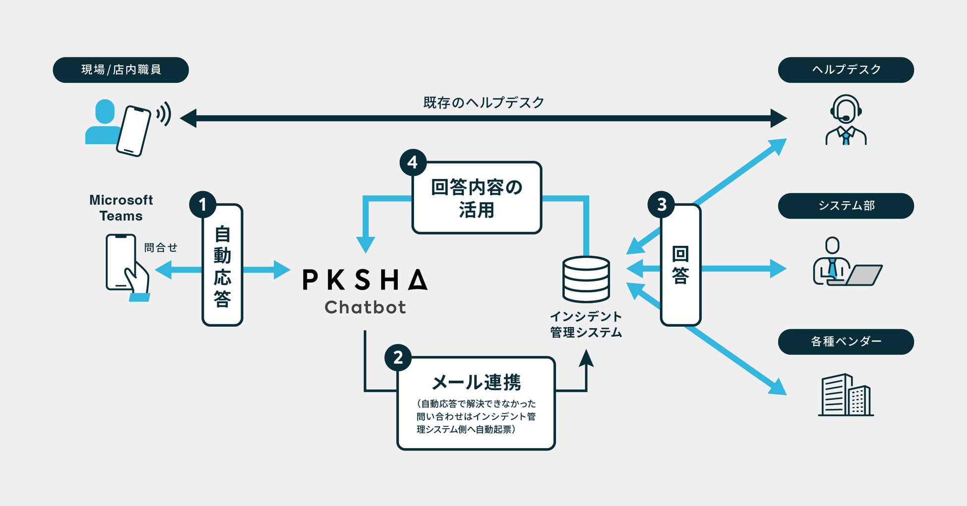 「PKSHA Chatbot」は、Microsoft Teamsやインシデント管理ツール等、様々なシステムと連動できる他、他社製にはない深層学習による高精度な自然言語処理機能を備えたAI対話エンジンを利用した的確な回答ができ、利用者が今、どのシステムで、何に苦慮しているのかを様々な角度から可視化・分析することもできます。PDCAサイクルの中で回答精度を向上させていくことができることから、当社が抱える課題の解決に最適なサービスであると判断し、導入することとしました。