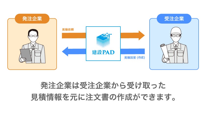 クラウド型受発注システム「建設PAD」は契約、受発注、請求といった業務をデジタル化し、事務負担を大幅に減らし、働く人々の生産性を向上させます。