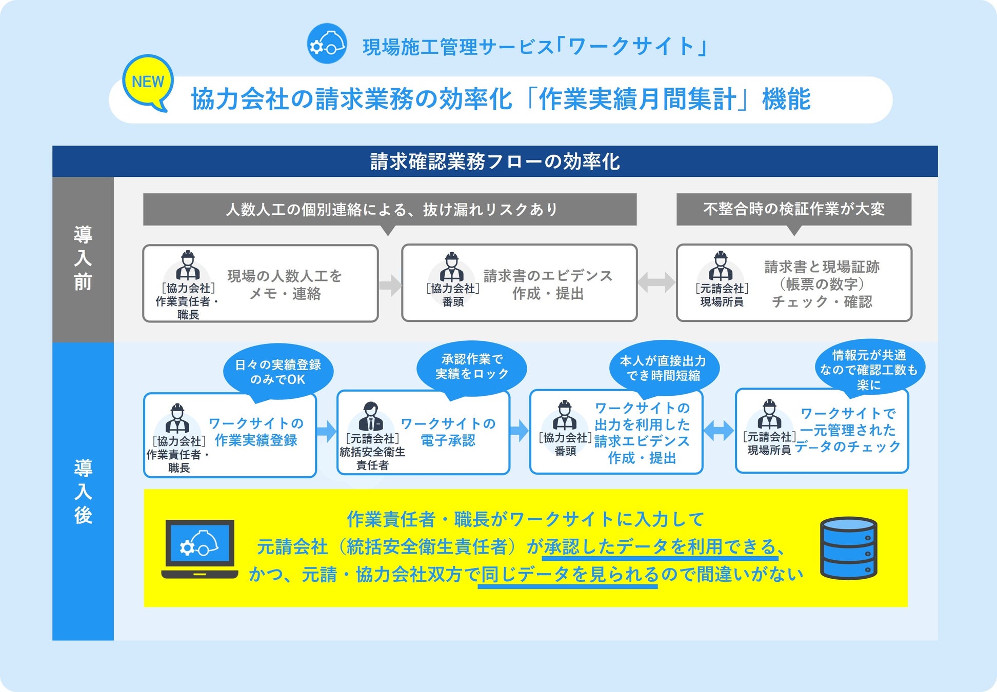現場施工管理サービス「ワークサイト」に新機能追加|「作業実績月間集計」機能で協力会社の請求業務の効率化に寄与