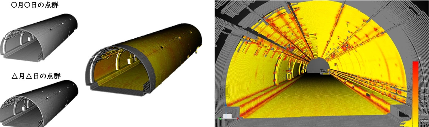 従来までの三角網と点群の比較だけではなく、点群と点群の比較にも対応できるようになりました。施工前後の比較や、施工直後からの経年変化状況など、点群同士の比較でより利便性が向上しました。