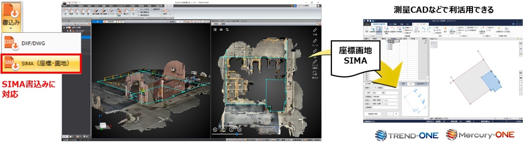 また、TREND-POINTから測量CADシステム側への座標やトレース線連携におけるコマンドを改良し、作業時間の約30%短縮(自社検証値)を実現しました。