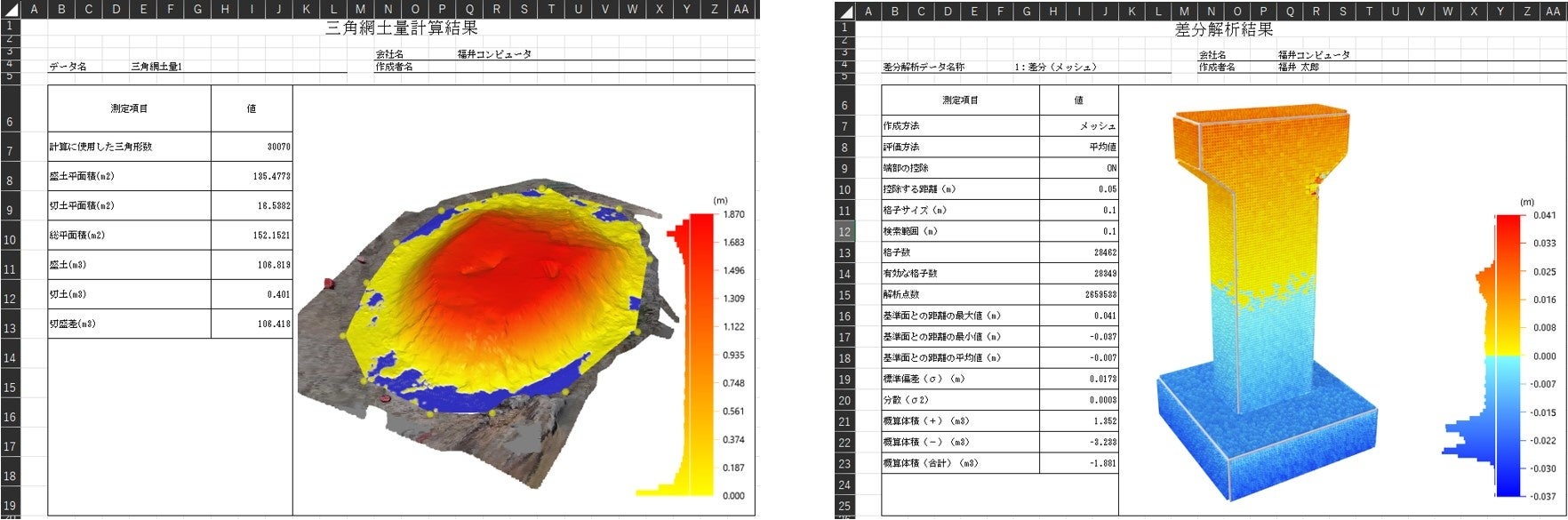 土量計算、ベクトル差分解析、凹凸計測などにおいてEXCEL帳票出力に対応しました。