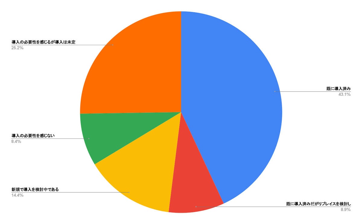 最も回答が多かったのが、「既に導入済み」と答えた方で43.1%。