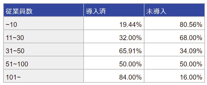 また、従業員数が増えるほど導入率が高くなる傾向が見られました。