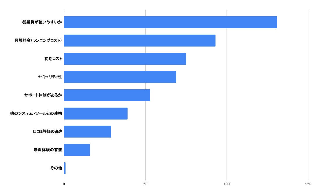もっとも多かったのが「従業員が使いやすいか」で回答者の64.9%が選択しました。