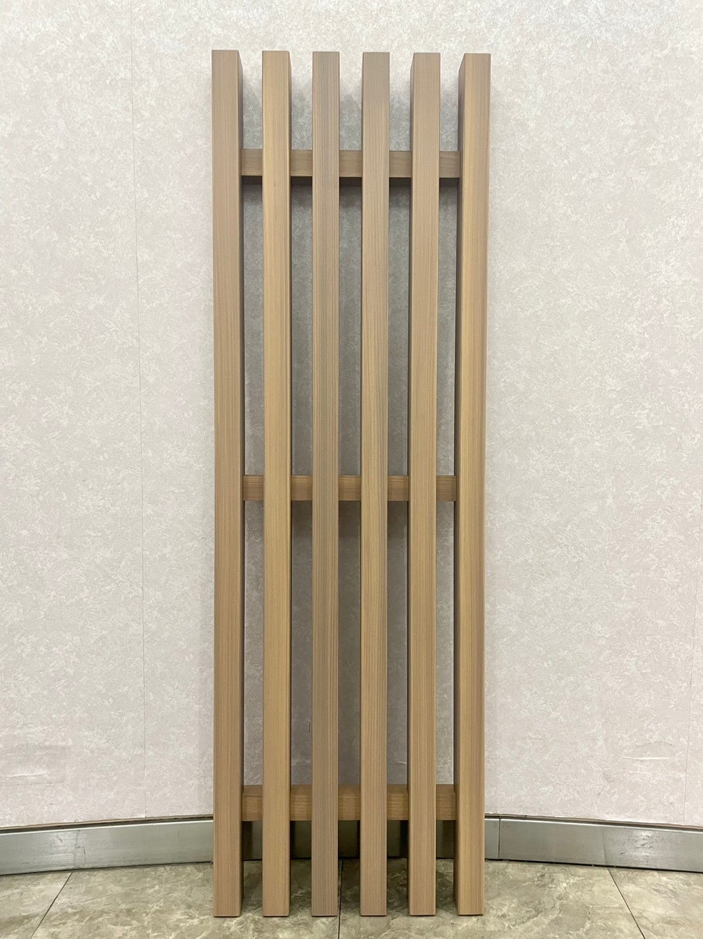 - 戸建て住宅向け垂木(タルキ)材として流通している国産スギ材にプレーナー仕上げと面取り加工を施し製造した外部装飾用の木格子パネル。