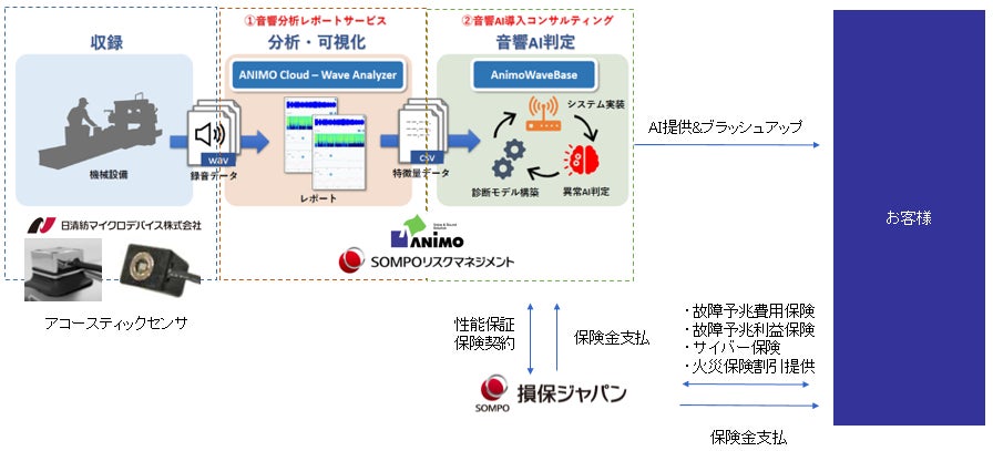 損保ジャパンとSOMPOリスクは、日清紡マイクロデバイスおよびアニモと連携して「音響診断AI化コンサルティング」の導入企業を拡大しつつ、AI導入時の検討課題となるリスクを保険転嫁することにより、社会・産業インフラにおけるDX推進と社会実装に向けて取り組んでいきます。