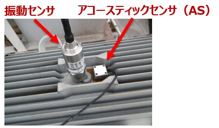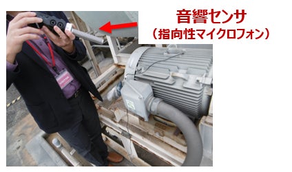 このアコースティックセンサは、一般的なマイクロフォンと比較して、幅広い帯域の周波音を収録することが可能であるとともに、設置方法の工夫により、対象機器に直接設置して音響収録することで周辺の雑音を除去することが可能という特徴を有しています。