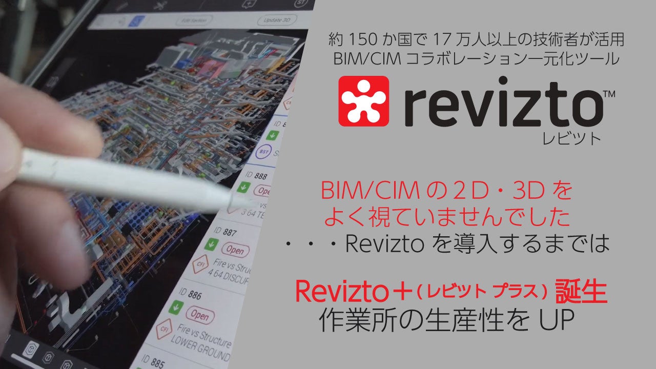 『Revizto(レビツト)』は、約150か国で17万人以上の技術者に日々活用され、BIM/CIM検証、関係者間の共同作業・コミュニケーションの負担を大きく軽減しています。2020年11月に日本でのご提供・サポートを開始以降、建設会社・設計事務所への導入が加速しており、ユーザー様に2D・3Dで課題・状況を可視化し、建設業界のQCDSE(品質・コスト・工期・安全・環境)実務に役立てていただいています。