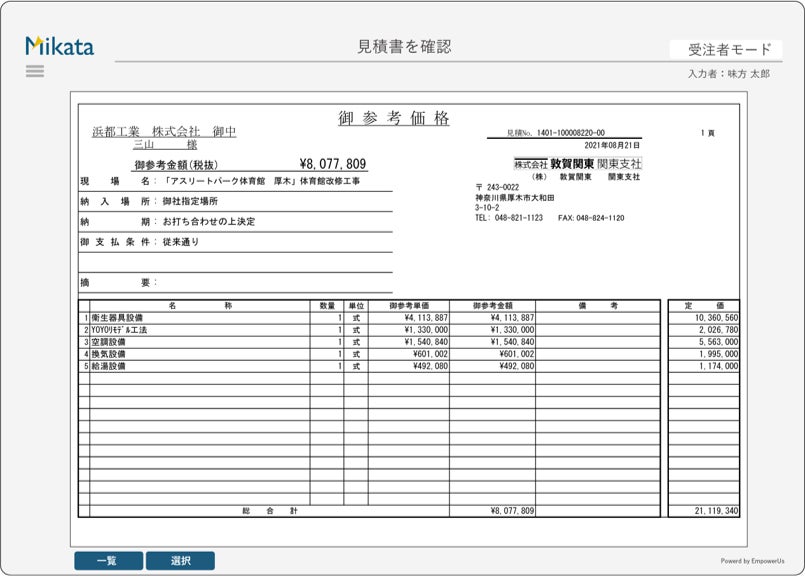 株式会社EmpowerUs(東京都世田谷区、代表取締役:額賀達也、以下:EmpowerUs)は、建設業界の見積業務の効率化ツール『Mikata(ミカタ)』の拾い出しサービスプランを2022年2月24日から開始致します。