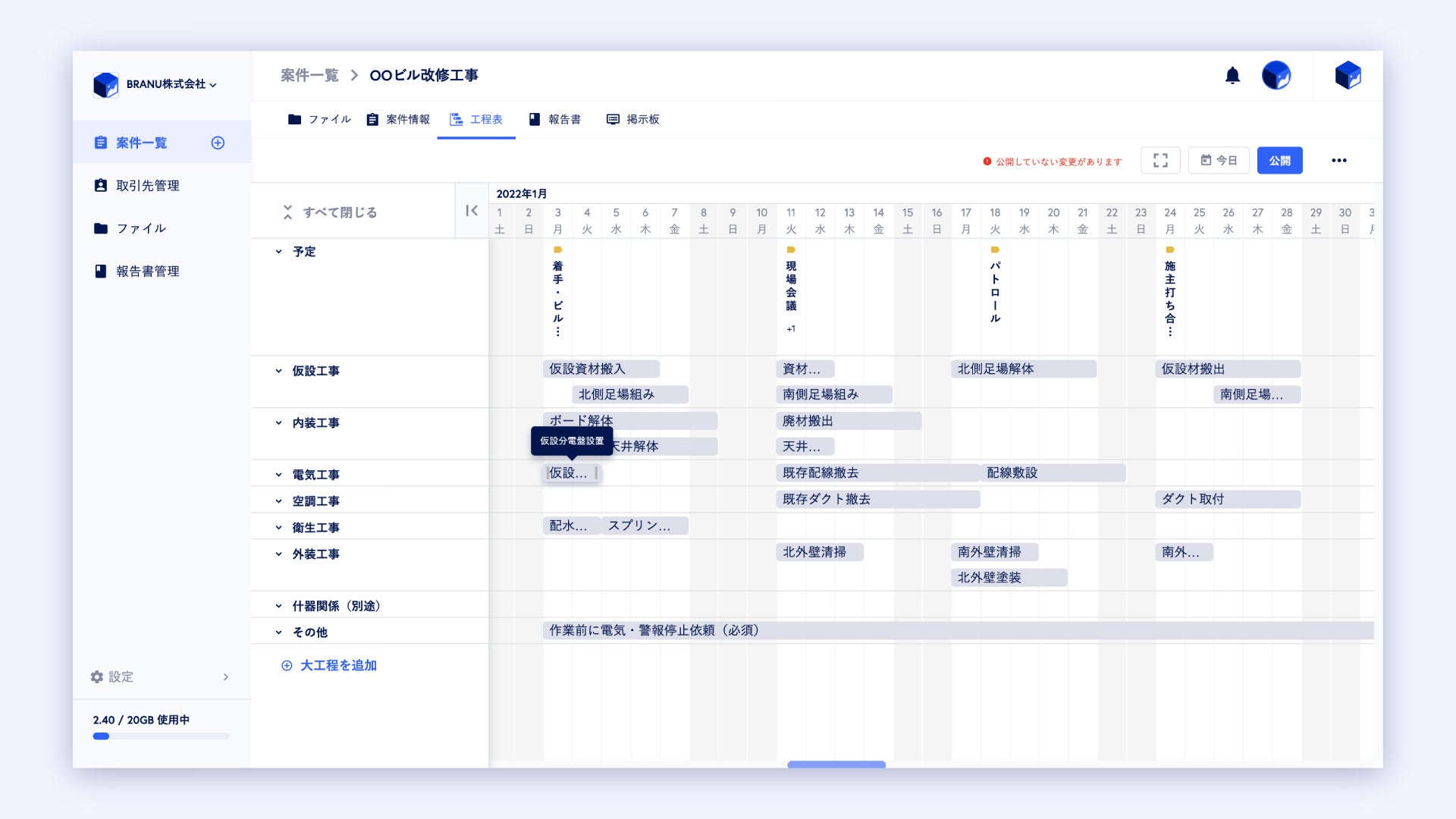 今回、メイン機能の1つである工程表機能のリニューアルを実施。より実用的で使いやすく生まれ変わりました。