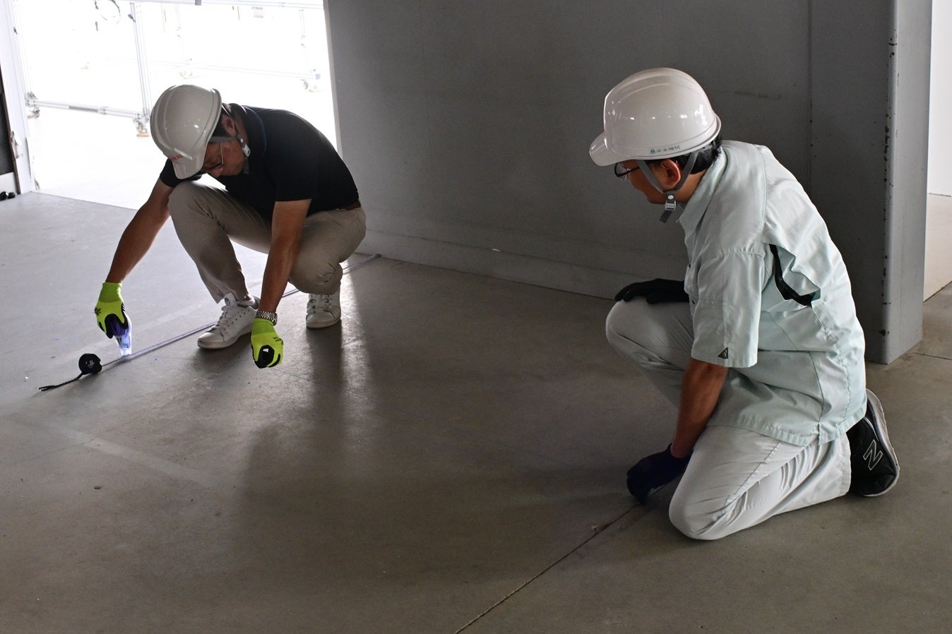 一方、墨出しロボットを導入することで作業は必ずしも熟練職人である必要はなく、1名での作業が可能となります。夕方現場を離れる前に墨出し作業のセッティングだけ済ませておけば、あとは夜中にロボットが自動で作業を行うことも可能です。作業スピードは熟練職人には及ばないものの、手順さえ正しければ間違いやバラつきもほとんどなく、非熟練作業者でも熟練作業者と同等、もしくはそれ以上の高い精度での墨出し作業が可能になります。