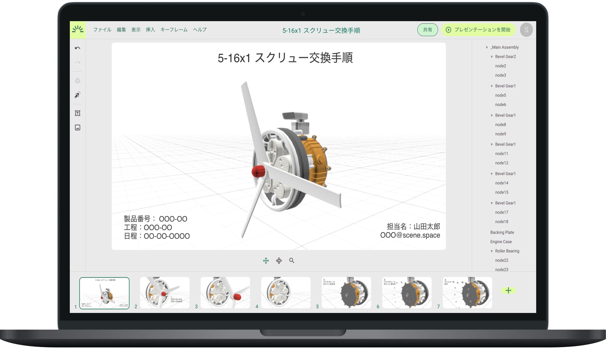 「Scene」は、社内の 3D データという資産を活用し、立体的でわかりやすい資料を、驚くほど簡単に作れる 3D ドキュメントツールです。製造資料の「作成に時間がかかる・伝わらない」を解決します。