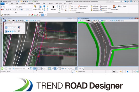 「TREND ROAD Designer」は、ベントレー・システムズ社(米国)からリリースされている道路の計画・設計・施工・運用のための業界標準CAD「OpenRoads Designer」をベースに、国内の法令、基準に準拠した道路・構造物設計が⾏えるよう独⾃に改良を加えた⽇本語版OEM製品で、2023年7月に道路設計における基本機能部分を先行して国内向け販売を開始しました。