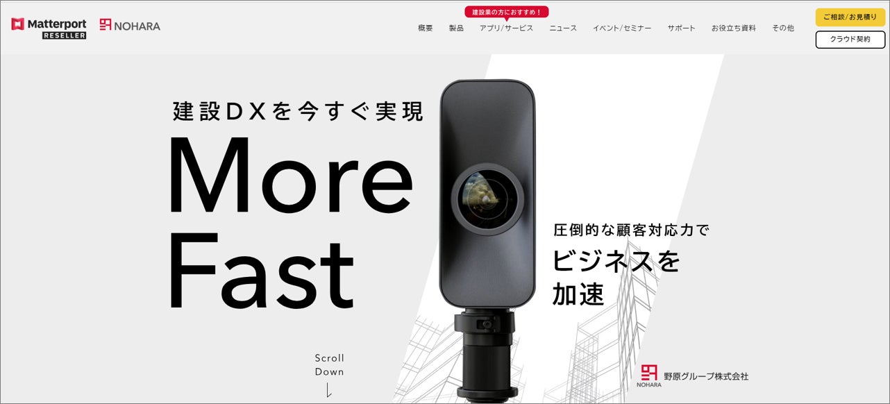 BuildAppで建設DXに取り組む野原グループ株式会社(本社:東京都新宿区、代表取締役社長:野原弘輔)は、2024年2月22日に3D撮影カメラ「Matterport(マーターポート)」のリセラーサイト(WEB)をリニューアルしたことをお知らせします。