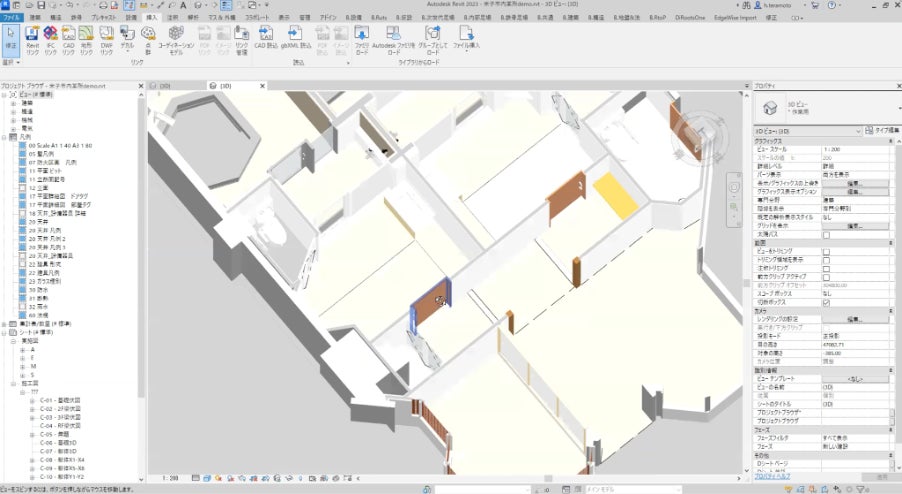 某旅館の部分的な改装(約160平米)にMatterportを活用した。構造図は残存していたが意匠図がなかったため、すべての改修範囲をMatterportで撮影。従来の手作業での測量であればおよそ1日を要する測量であったが、Matterportでの測量は2時間足らずで完了した。点群データをBIMに利用するとともに、撮影データは施工前・施工後の比較イメージとして施主への提案・説明に使用。社内の反応もよく、顧客からの評価も高い。