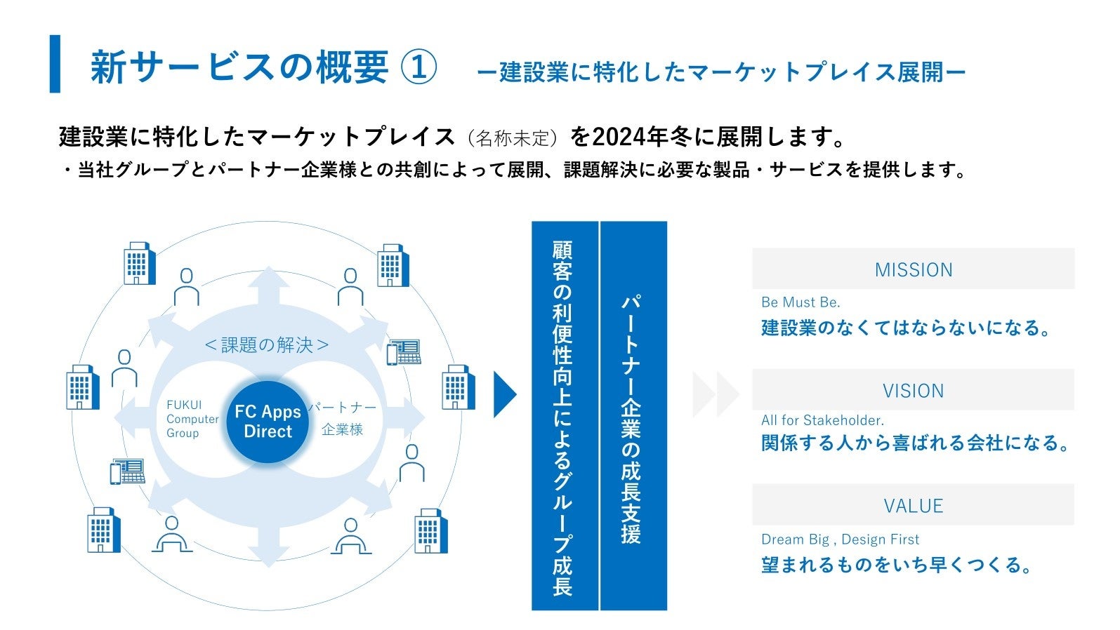 福井コンピュータホールディングス、建設業に特化した新たなマーケットプレイス展開について