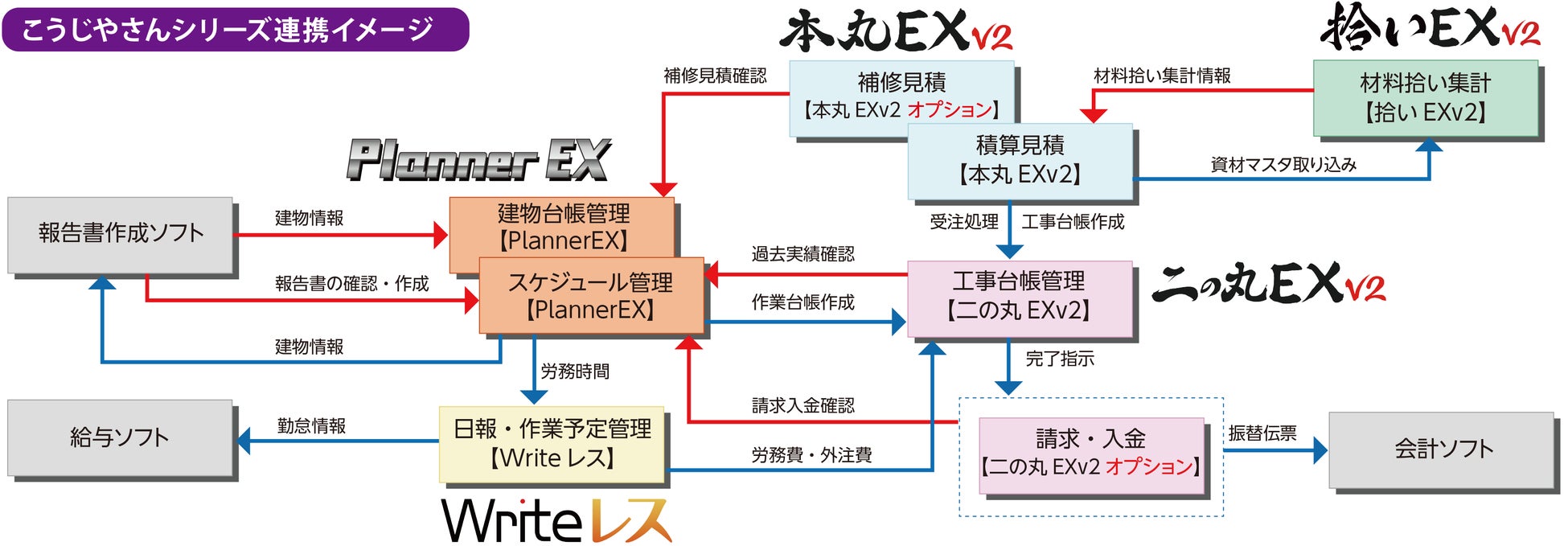 「こうじやさん®シリーズV2」では、従来製品よりさらにシリーズ製品間、そしてパートナー製品とのデータ連携を強化しました。どの業務からデジル化しても、業務全体をつなげていけるため、スモールスタートDXに最適です。そして、中小企業のDXの障壁となる、従業員のITリテラシーや導入コストの負担に対応するため、初級者レベルのPCスキルでも楽に使える操作性、全社導入しやすい料金設定にこだわりました。