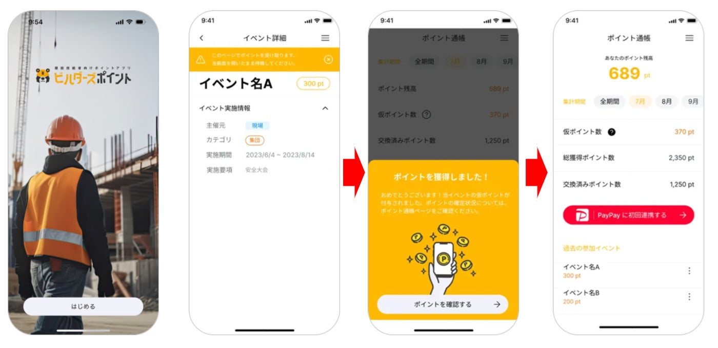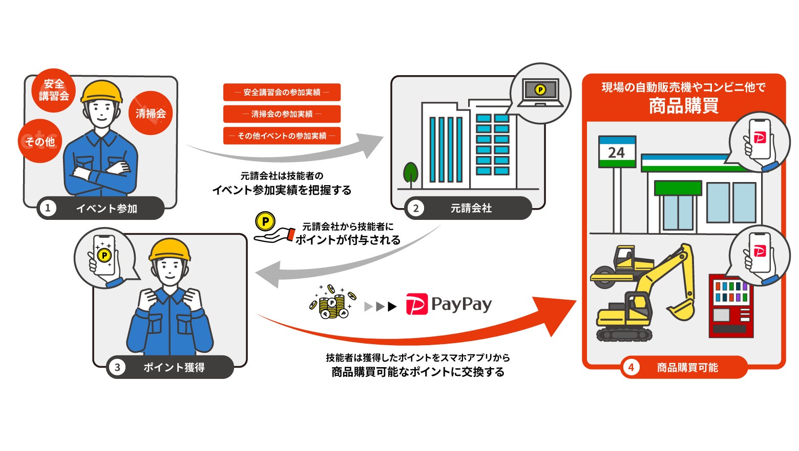 ・リバスタが鹿島建設・戸田建設・西松建設の全面協力のもと、 建設技能者向けポイント付与実証実験を開始 ~ ポイントはPayPayマネーライトに交換でき商品購買に利用可能 ~(2023年10月11日)