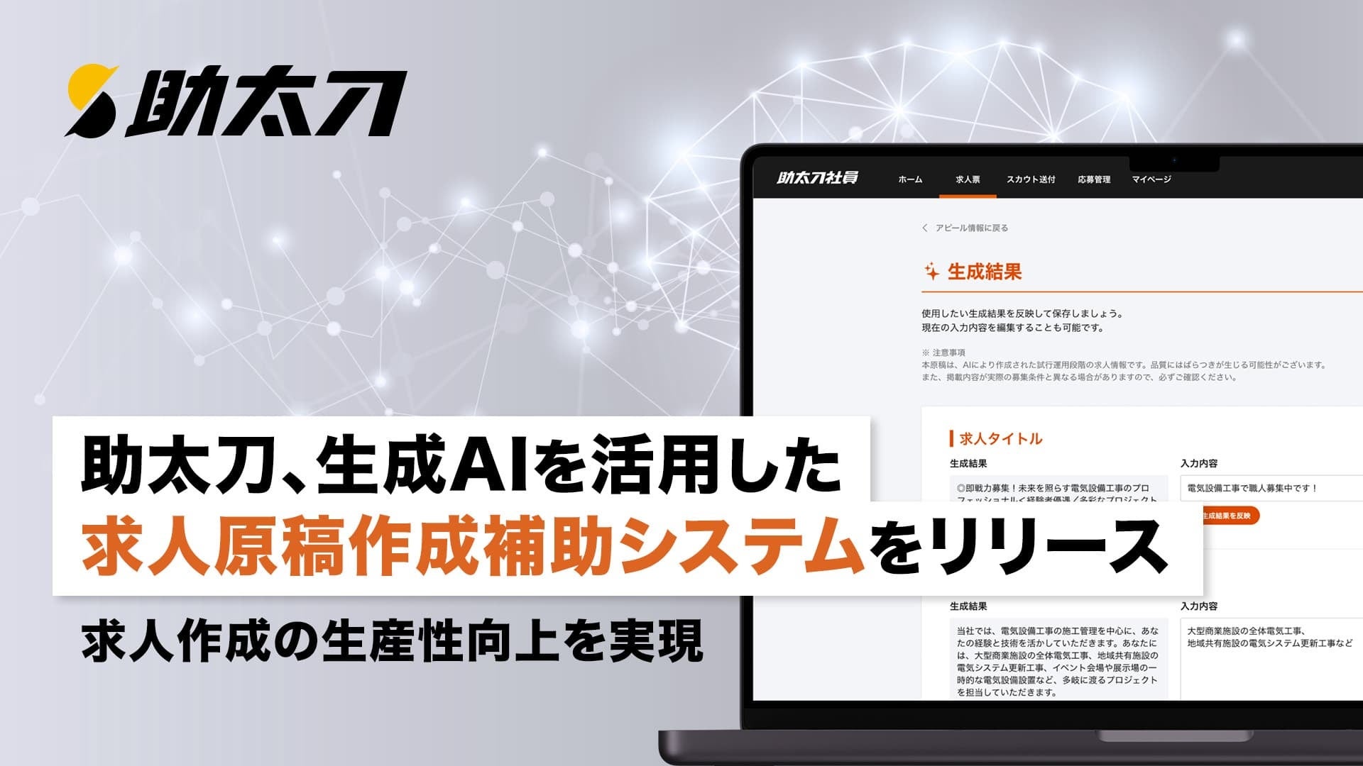 助太刀、生成AIを活用した求人原稿作成補助システムをリリース。求人作成の生産性向上を実現