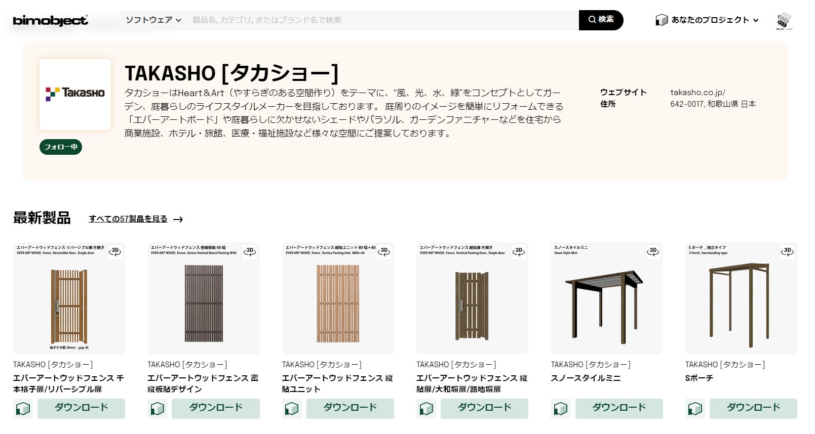 タカショー、「BIMobject」に国内で業界初 製品50カテゴリのBIMデータ配信を開始