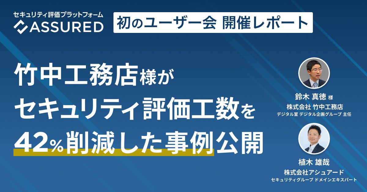 出典 :PR TIMES,竹中工務店がセキュリティ評価工数を42%削減したAssured活用事例を公開!セキュリティ評価プラットフォーム「Assured」初のユーザー会を実施,https://prtimes.jp/main/html/rd/p/000000650.000034075.html,参照日2024-08-07