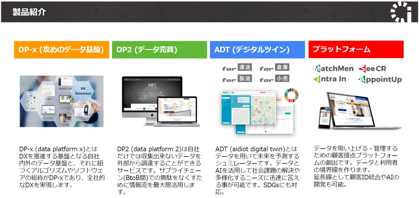 「BtoB領域の脳と心臓になる」をビジョンに掲げるアイディオットでは、日本最大級のデータマッチングプラットフォーム『DP2』を軸にAI・DX・デジタルツイン・脱炭素・新規事業といった領域で膨大なデータを活用し社会課題の解決を実現していきます。