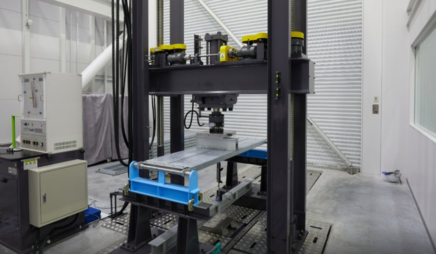 “安全の可視化”を通して、お客様に安全な仮設機材を提供するために実証実験を行うエリア。明確な耐久性の数値基準を設け、お客様へ安全な仮機材を提供するために研究を行います。廃棄の基準となる数値の根拠がなかった仮設機材。