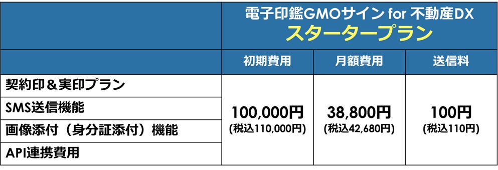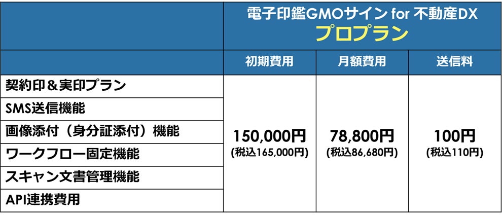 「電子印鑑GMOサイン for 不動産DX」には、『スタータープラン』と『プロプラン』の2種類のプランがあります。本人性の担保を重視する『スタータープラン』は、安全・便利に不動産取引で電子契約を始めたい不動産事業者に推奨するメニューとなっており、「電子印鑑GMOサイン」の基本プランに本人確認等のオプションが標準でセットされているプランとなっています。『プロプラン』は、『スタータープラン』にワークフロー固定・文書管理のオプションが付与されており、さらにガバナンス強化機能を追加したい不動産事業者に向けた内容となっています。