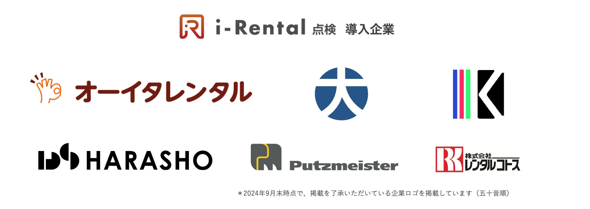 導入企業:オーイタレンタル株式会社、有限会社大宮工機、株式会社開成、株式会社原商、プツマイスタージャパン株式会社、株式会社レンタルコトス