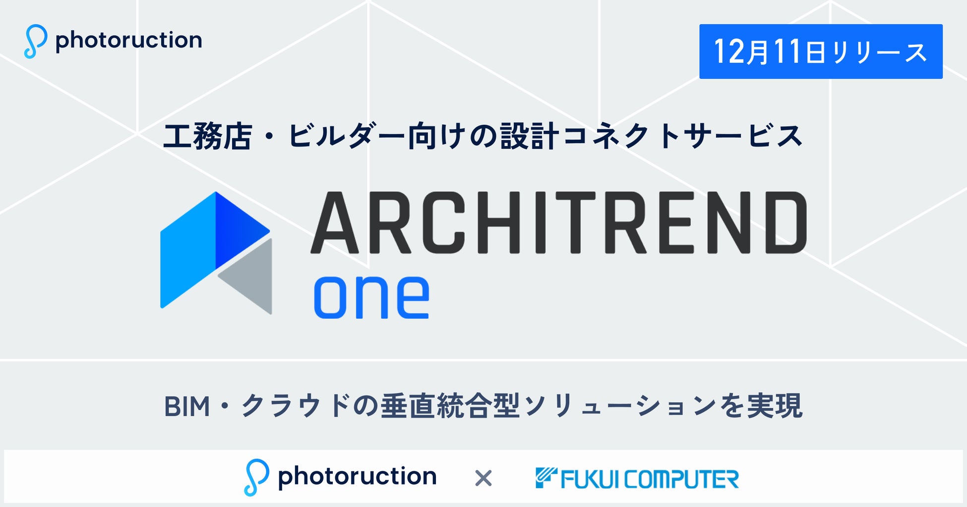 「建設の世界を限りなくスマートにする」をミッションに掲げる株式会社フォトラクション(本社:東京都品川区、代表取締役 CEO:中島 貴春)は、福井コンピュータアーキテクト(本社:福井県坂井市、代表取締役COO:田辺 竜太)と共同で、工務店・ビルダー向けの設計コネクトサービス「ARCHITREND ONE(アーキトレンド ワン)」を2024年12月11日(水)にリリースいたします。