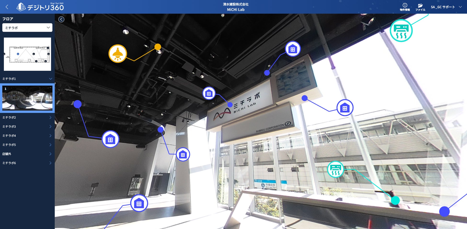テナントの入居予定者なども、360度まわりを見渡せる、疑似的な VR 空間により、パンフレットや紙の図面に比べて建物情報のイメージが掴みやすくなり、入居後もさまざまな取扱説明書がデジタル化する事で管理がしやすくなると考えております。