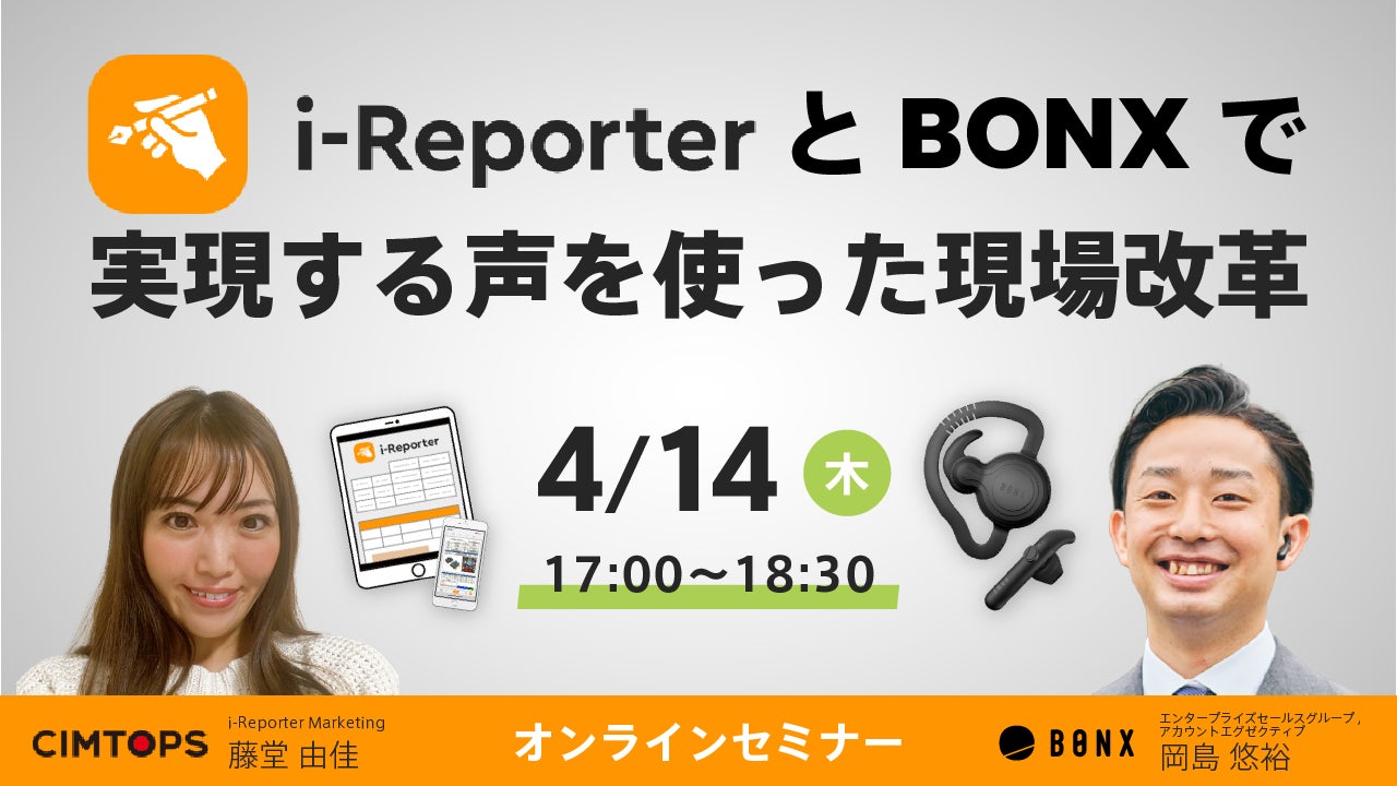 グループトークソリューション「BONX WORK 」を提供する株式会社 BONX (東京都渋谷区、代表取締役 宮坂貴大、以下「BONX」)と、「現場帳票」ペーパーレス ソリューション i-Reporterを提供する株式会社シムトップス(本社:東京都品川区、代表取締役社長:水野 貴司、以下「シムトップス」)は、i-Reporterの音声入力による帳票入力機能が、BONX WORKを利用しながら使用可能になったことをお知らせいたします。