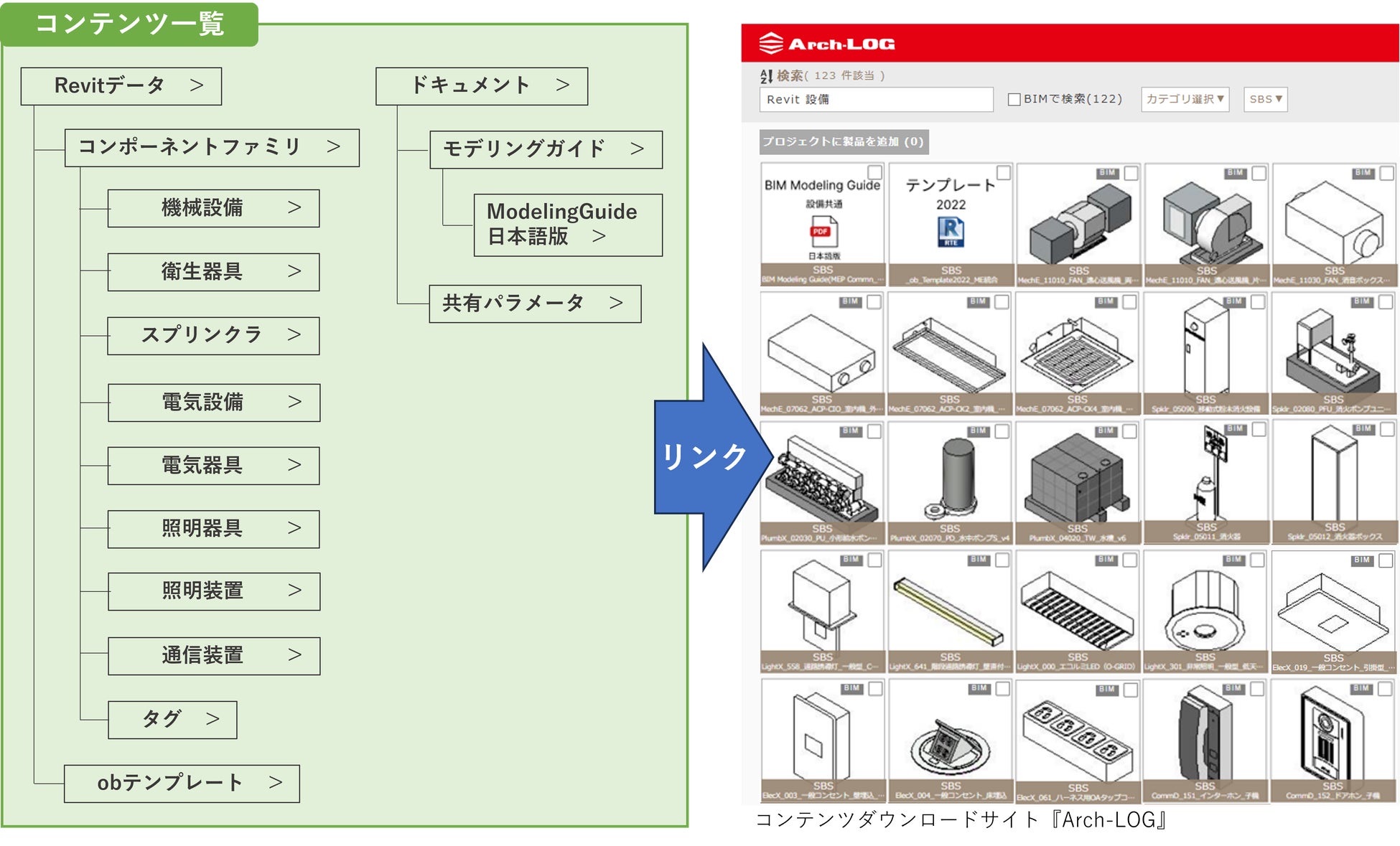 丸紅アークログ株式会社(本社:東京都港区、代表取締役:井谷 嘉宏、以下:当社)は、株式会社大林組(本社:東京都港区、代表取締役社長:蓮輪 賢治、以下:大林組)が公開しているBIM(※1)一貫利用のためのモデリングルール「Smart BIM Standard®」(※2)(以下:「SBS」)の特設サイト(https://smartbimstandard.com/)と、当社の建設・建築業界のためのデジタルデータプラットフォーム「Arch-LOG(アークログ)」サービスを活用した「ダウンロードページ」内で、設備設計におけるBIM利用の推進を図るため、設備設計用スタンダードを追加公開します。