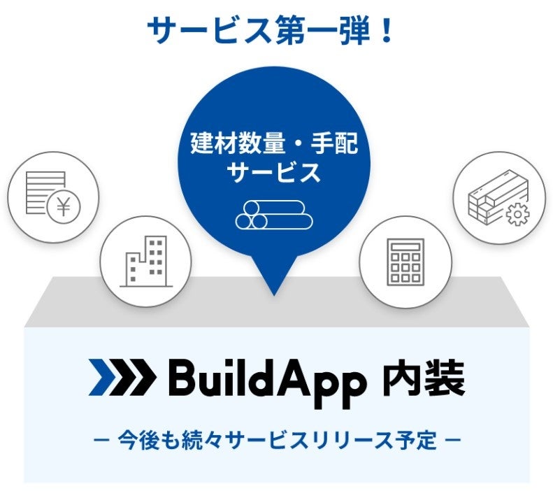 本日商用提供を開始する「BuildApp内装 建材数量・手配サービス」は、「BuildApp内装」の初弾サービスです。